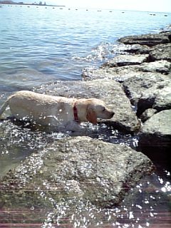 最初はちょっとびくびく、でもだんだんと楽しそうに水の中へ入っていきました♪