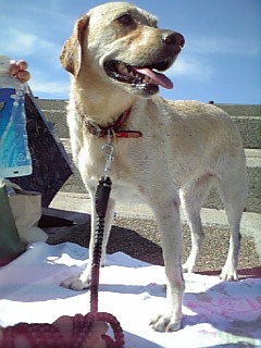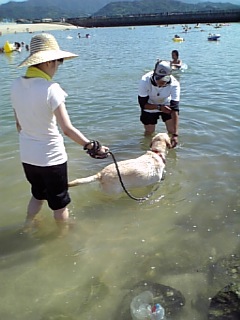本来、海水浴場での犬を連れての遊泳はいけません。