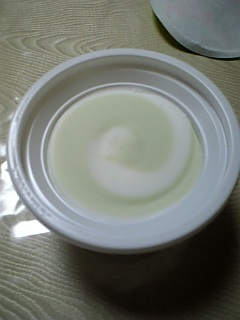 分かりにくいでしょうが、グリーン色と白色のマーブル状になってます。