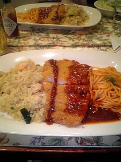 ピラフにカツレツにスパゲッティという、ボリューム満点の1品☆
