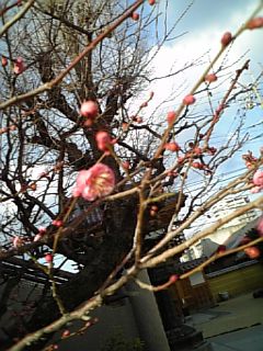 そういえば3日ほど前にはたった1つしか咲いてなかった梅の花が、今日みたらぽつぽつ咲いてました♪