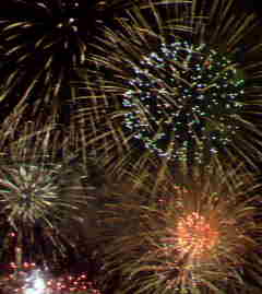 毎年恒例の(?)ドラ○もんなどのキャラクターや渦巻き型の花火もあったりね(笑